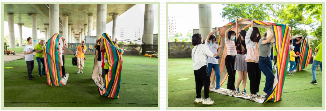 短暫的歇息后,隨著工作人員的召集,家長朋友迅速分好隊伍,開始布置野餐場地和準備食物。戶外野餐能感受別樣快樂的同時也培養了孩子們勞動、自理能力。在白云與草坪下,孩子們參與其中,樂不思蜀。