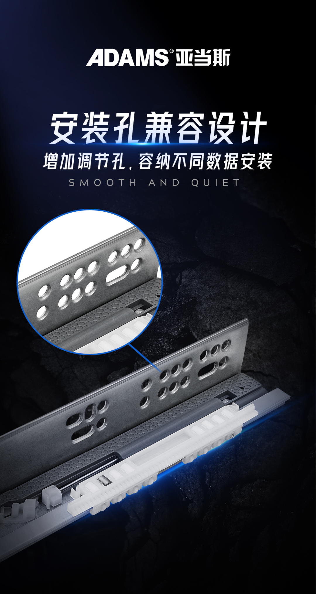 固定軌安裝孔科學設計,兼顧多種安裝參數。增加橫豎長型調節孔,容納安裝時出錯。